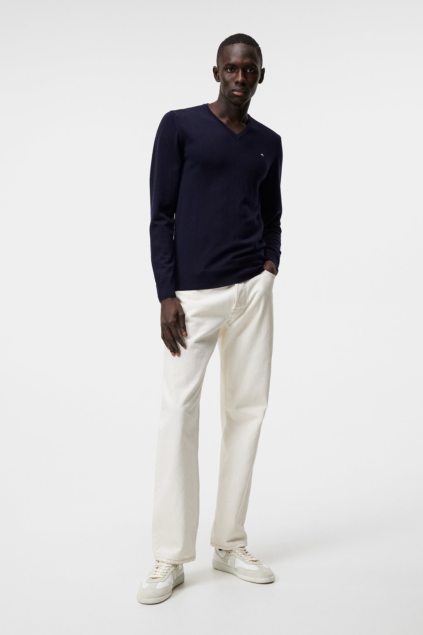Men´s Lymann True Merino knit. A J.Lindeberg best seller and favourite garment since 1997. Perfect V-neck merino knit branded with a discrete bridge logo on the left chest. The fabric in this sweater comes from the Merino sheep that produces very fine and soft wool. It is spun in one of the oldest and most esteemed textile mills in northern Italy, Tollegno in Biella, where they have spun yarns for more than 100 years. The wool fibers used for this sweater is 19,5 micron which makes the garment extremely soft and comfortable.- V-neck- Long sleeves- Made of merino wool- STMC732987103-6693