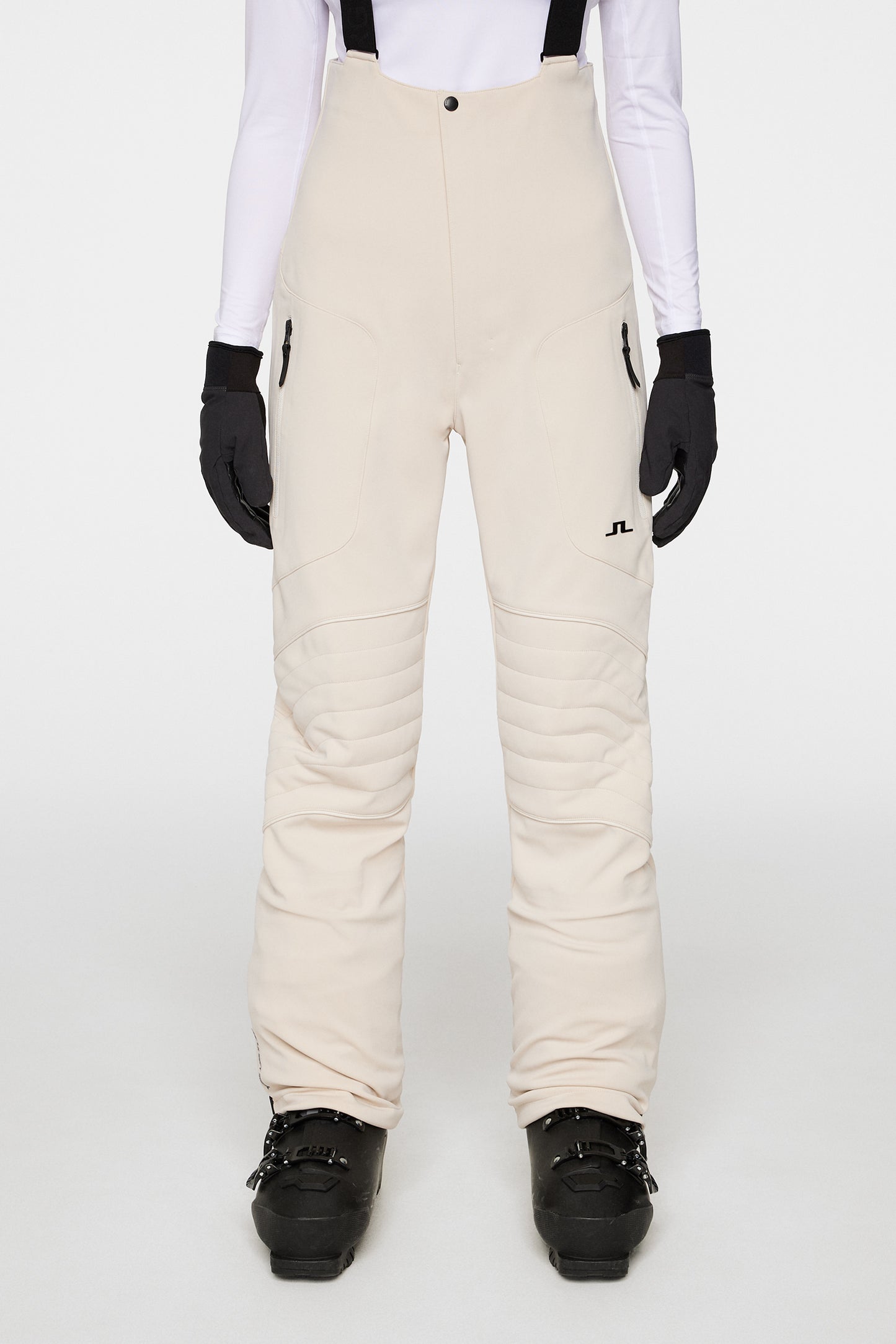 Die vielseitige Stanford Pro Bib Pants wurde von unserer Bestseller-Hose, der Stanford Pants, inspiriert und ist aus LX SOFTSHELL Material gefertigt. Sie hat gepolsterte Knie für mehr Strapazierfähigkeit und Schutz, während das Design mit hohem Bund für eine schmeichelhafte Silhouette sorgt. Elastische Schneegamaschen am Unterschenkel bieten zusätzlichen Schutz vor den Elementen, während die Belüftungsreißverschlüsse am Unterschenkel einen individuell anpassbaren Luftstrom für optimalen Komfort ermöglichen. Das ikonische JL-Bridge-Logo am Bein sorgt für einen Hauch von unverwechselbarem Stil.- Wasserabweisend