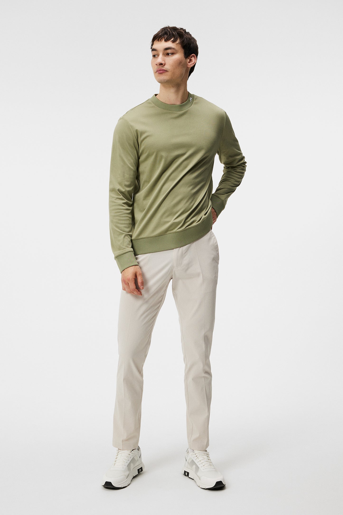 The revamped Jones Sweater is now crafted in a new premium quality Pima cotton that combines durability and a luxurious feel, ensuring comfort and versatility. This modern essential features a sleek crewneck design complemented by a contemporary mesh artwork at the back. With meticulous attention to detail, including the iconic Bridge logo at the collar and ribbed accents at the neck, bottom hem, and sleeve openings, this sweater exudes understated elegance.- Lightweight