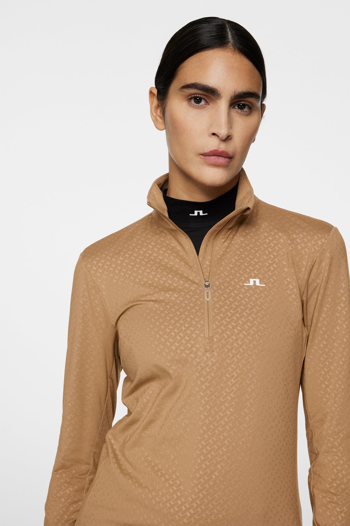 - Quarter zip with stay-down zipper puller