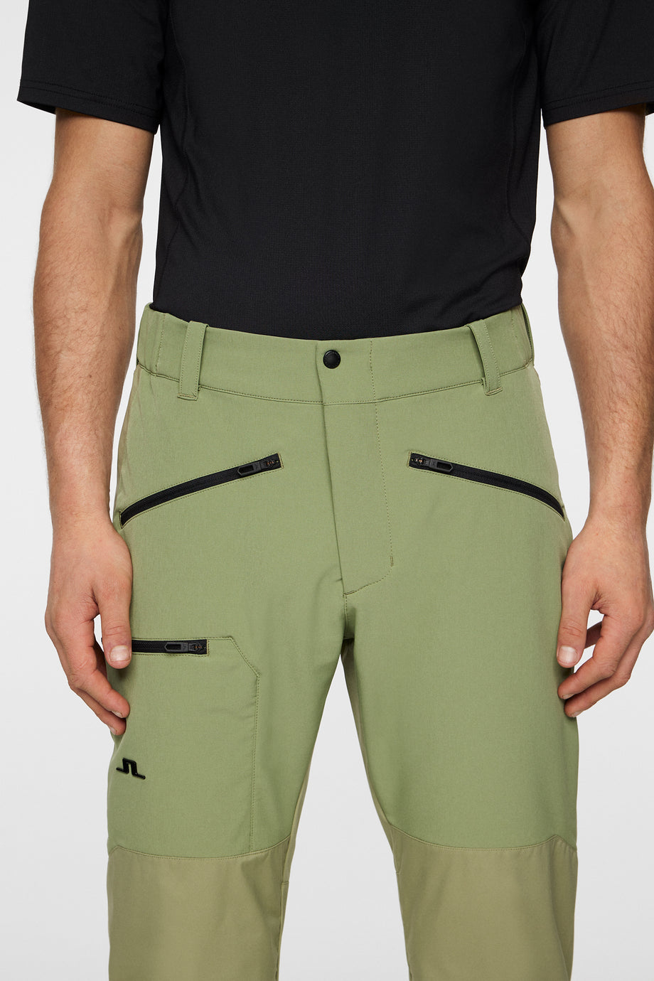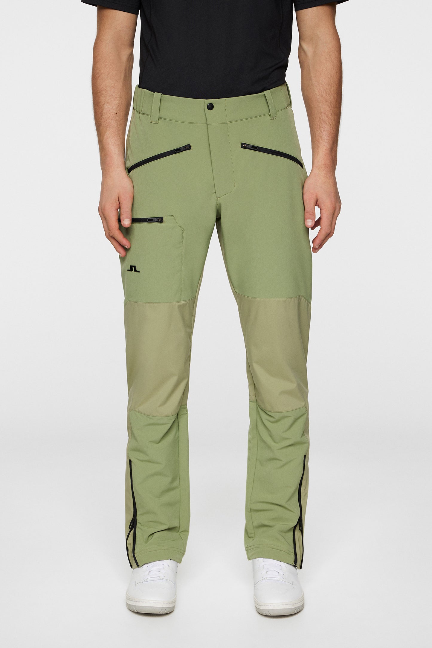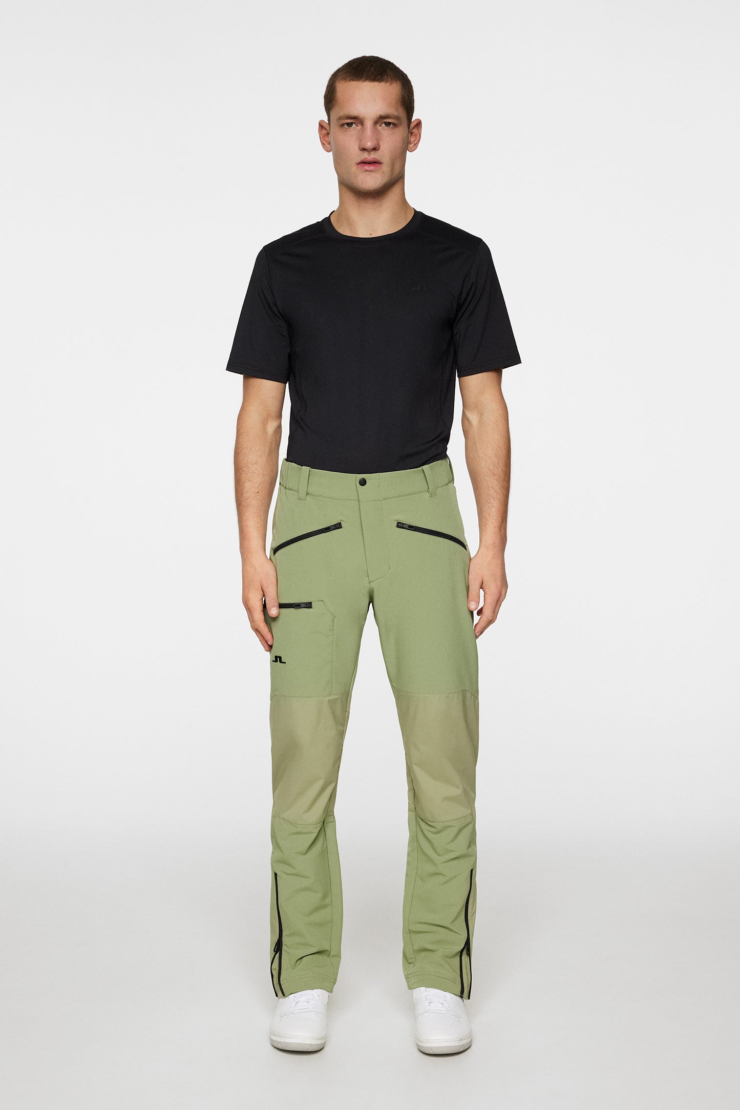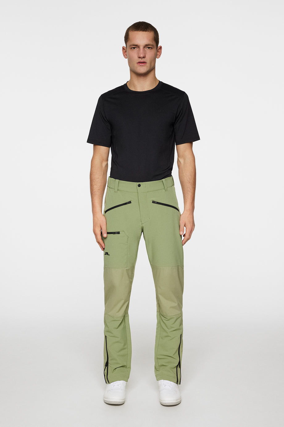 - JL text logo on bottom right leg