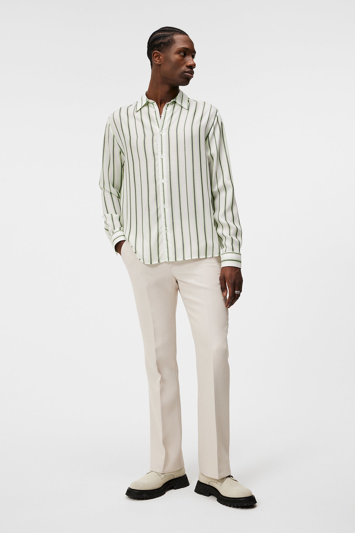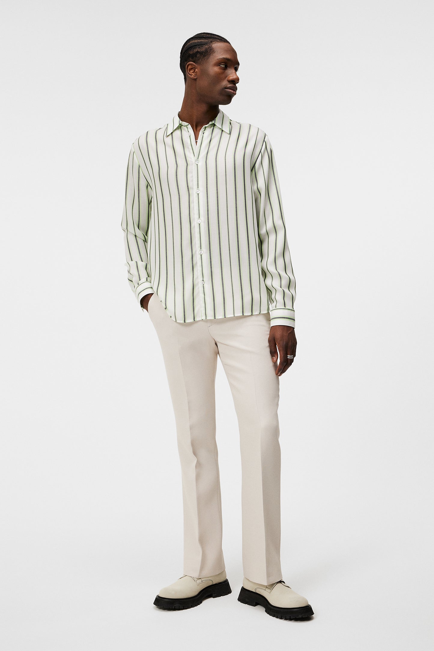 Voici notre Chemise rayée Florindo Tencel, taillée dans notre silhouette décontractée Florindo, magnifiquement ornée d'un motif rayé de saison. Confectionnée dans un tissu Tencel doux et confortable et ornée de boutons en nacre poudrée et d'un col regular, elle est dotée d'une patte de boutonnage française pour une finition raffinée.- Buttoned cuffs
