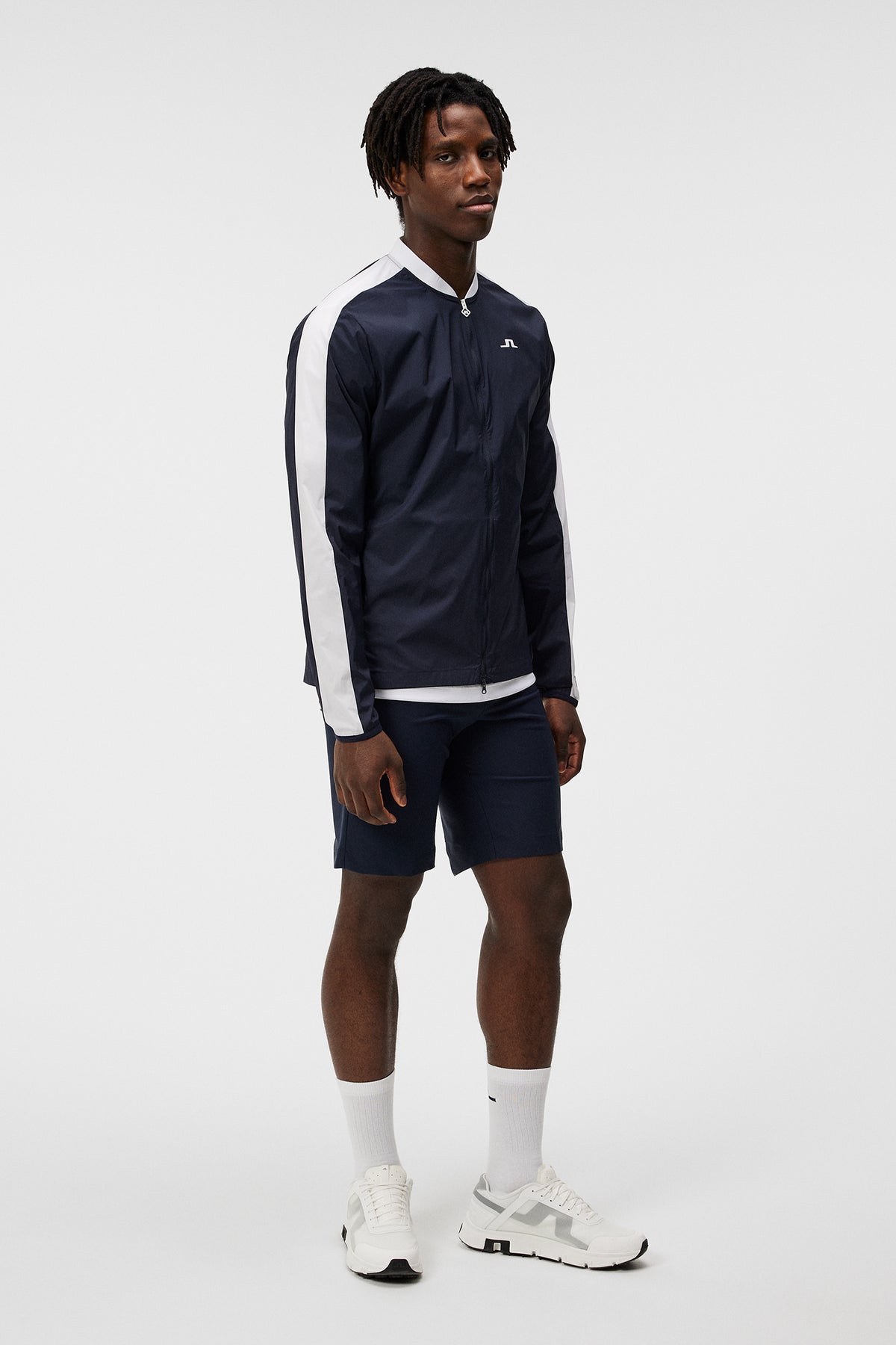 Vi introduserer vår nyeste Tom Jacket, laget i det letteste vindstoffet i kolleksjonen, den her eksepsjonelt elastisk, har en bemerkelsesverdig lett design, er vindtett og vannavvisende. Med hendig toveis glidelås, og strikket høy krage for komfort, som enkelt kan brettes inn i brystlommen, og lett oppbevares i golfbagen. Komplett med tapede, elastiske logo-detaljer, hevet silikontrykk av Bridge-logoen, og kontrastfargede innfellinger.- Standard passform