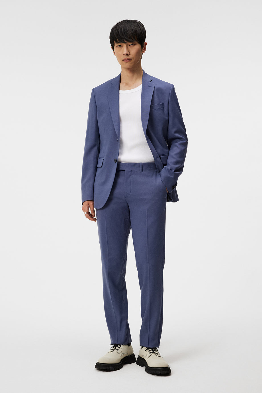 Introducing our iconic Hopper Active Hopsack Blazer, crafted from a textured and super comfortable wool blend fabric in a breathable hopsack weave, combining stretch and crease resistance for ultimate comfort and a polished look. Tailored in a slim-fit silhouette, it's unconstructed with a classic notch lapel collar. It is half-lined with our signature logo lining and traced with branded Corozo two-button closure and stacked buttons at the cuffs for a distinguished finish. Pair it with our Grant Active Hopsack Pants for a sophisticated suit ensemble.