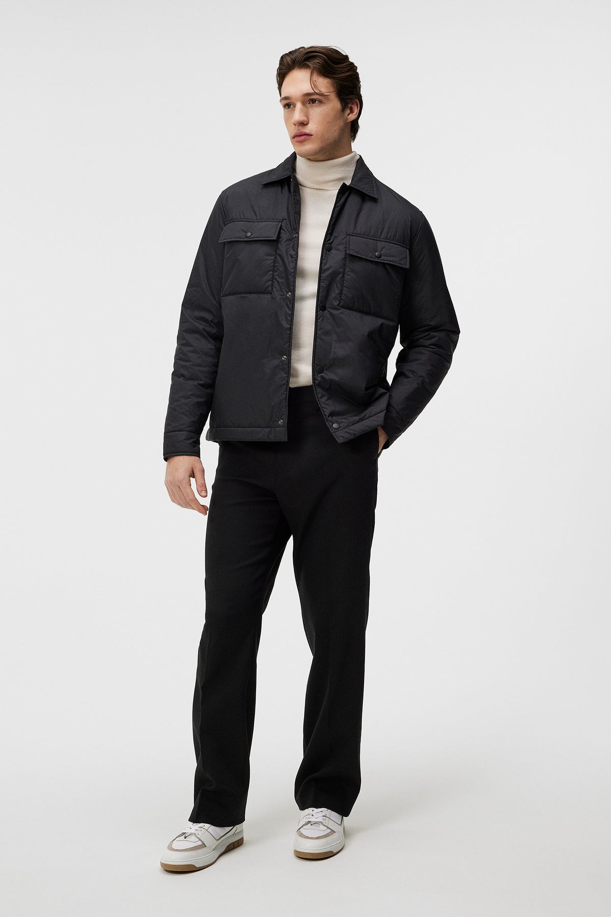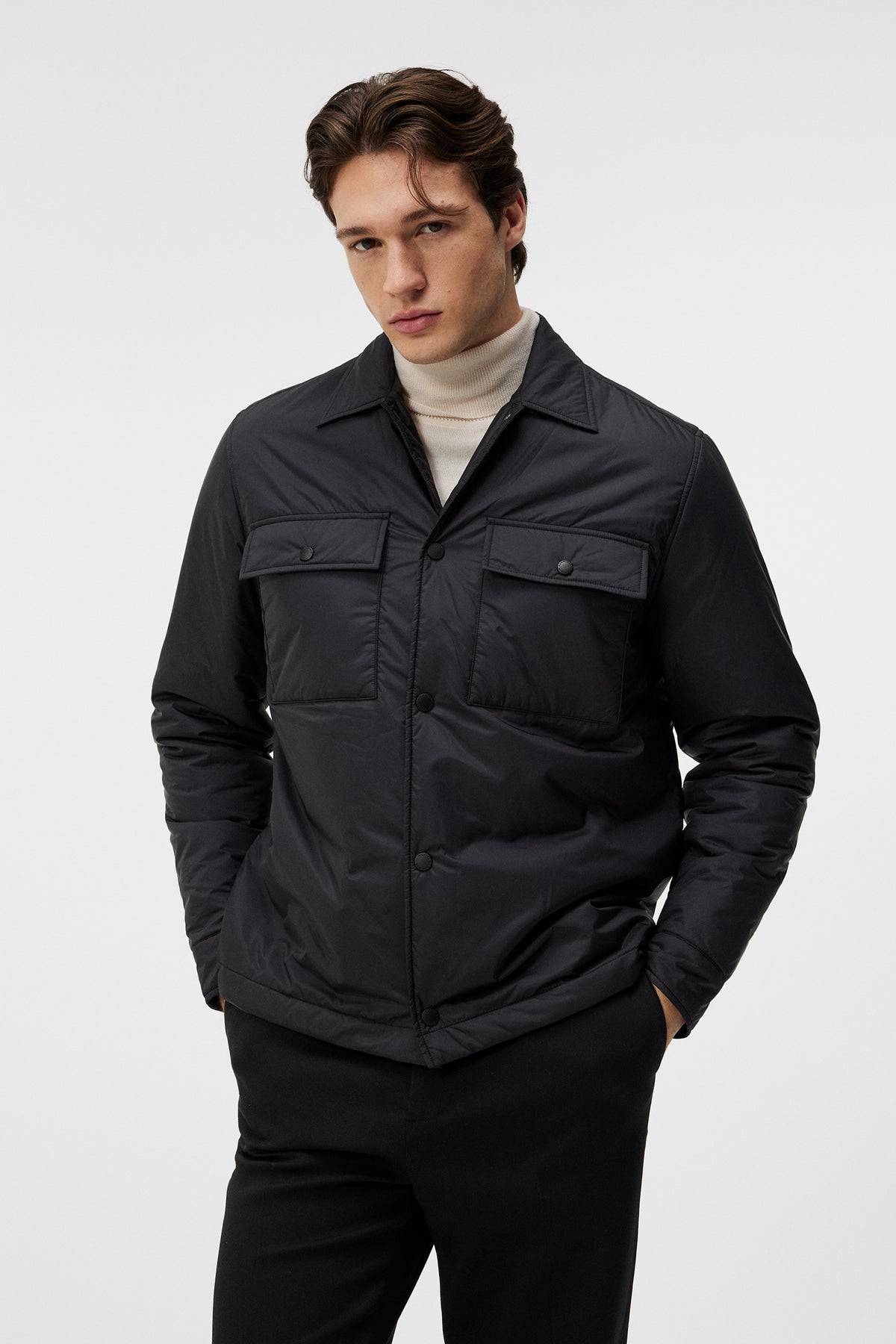 Experience the fusion of sporty materials and timeless design in our Nile Overshirt. Crafted from soft, recycled fabric, this piece features a fully lined interior filled with Primaloft padding for warmth and comfort. Adorned with a press-button front closure, it includes two chest pockets with button closures, adding functionality and classic style.
