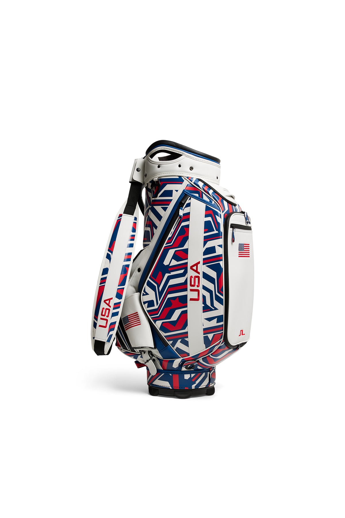 Experience tour performance with our Staff Bag. Equipped with a patented rotator stand system, this bag ensures maximum stability, allowing you to access your clubs effortlessly. Featuring exclusive US golf print and graphics allover. With six strategically placed pockets, including a magnetic, velour-lined rangefinder pocket and a velour-lined personals pocket, you'll have ample storage for all your golfing essentials. Crafted from water-resistant material, it's built to withstand the rigors of the game. Trusted by tour professionals and caddies, this staff bag is ideal for those who demand the most out of their equipment.- Water resistant material